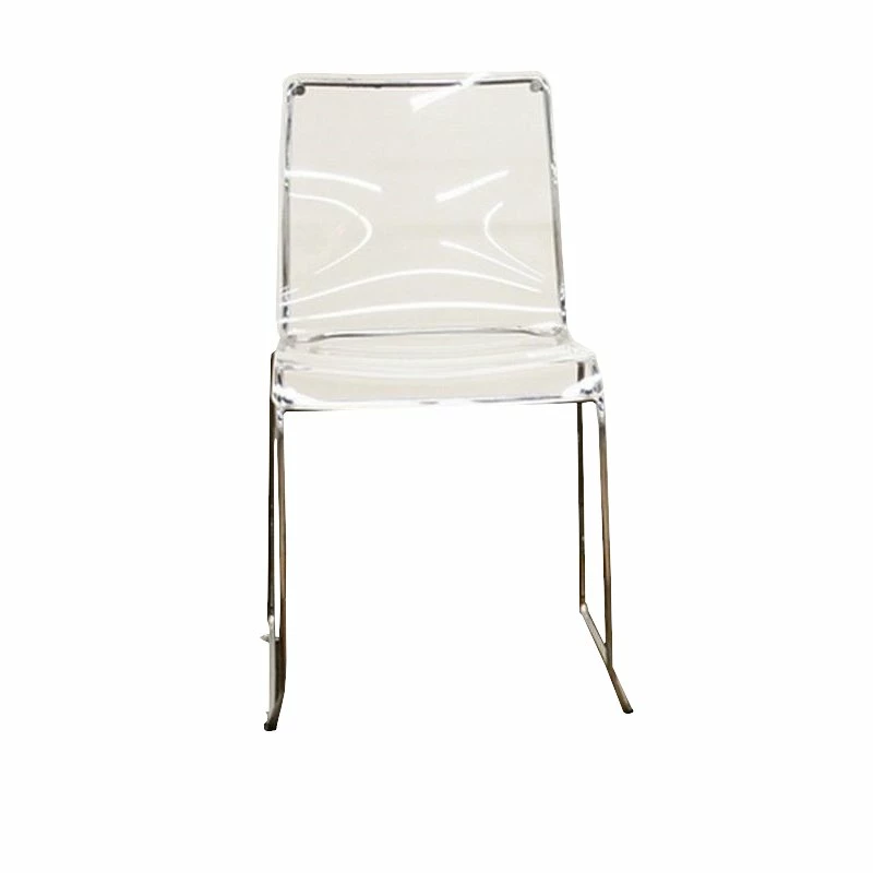 These simplistic modern dining chairs will instantly change the look of your room – for the better! With a chrome-finished steel frame and heavy-duty acrylic seat, these minimalistic chairs are sturdily and dependably built. The seat top is transparent clear. Included for each chair are four black plastic floor protectors, which also stabilize the chair. This chair is stackable, and will arrive fully assembled.