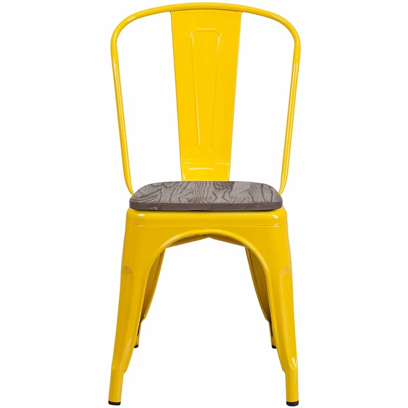 Chat among friends and family in the dining room or kitchen on these comfy colorful dining chairs. The metal chair with wood seat adds a rustic touch. Appealing in both modern and industrial spaces, if you decide to move or redesign your space these accent chairs will adapt. Completely transform your dining space with this vintage bistro style chair. Designed for commercial environments the steel frame is coated in a durable powder coat finish to endure in high traffic areas. With a 500 pound static weight capacity you’ll be able to accommodate all visitors for as long as you’re open for business. Whether you need furniture for your home or restaurant business you’ll be more than pleased with the heavy-duty galvanized steel construction that will last for years. This stackable metal chair is ready for use in no time by using the included brackets to affix to the seat.